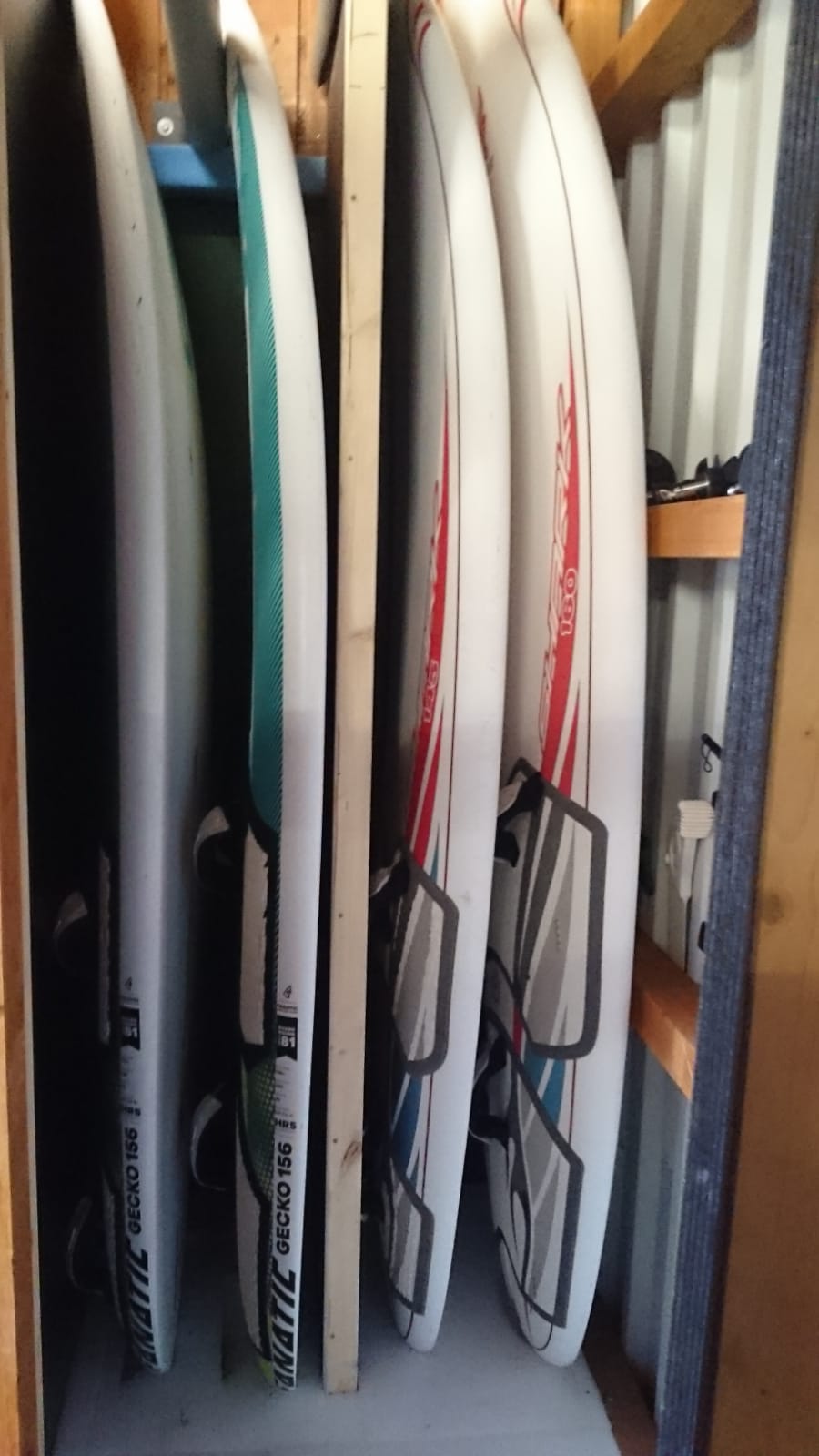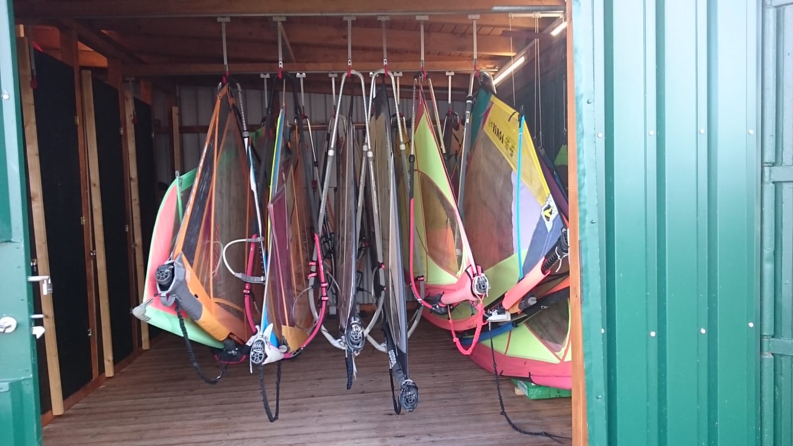 Ein ziemlich Problem ist, gerade im Sommer, daß gegen Abend eine größere Anzahl an Boards, Segel oder Sups auf der Wiese verbleiben. Der Dumme ist der jenige der als letztes noch vor Ort ist.
