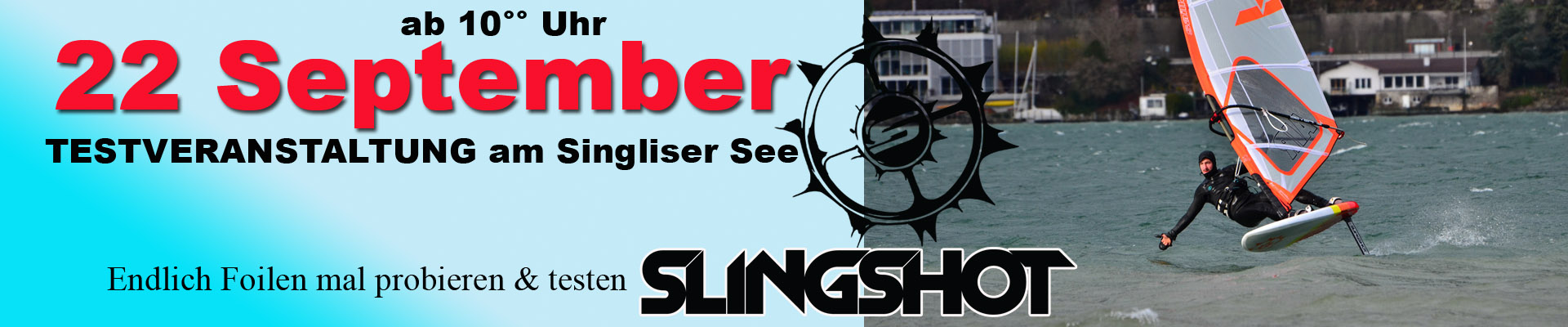 Am Sonntag den 22. September 2019 ab 10 Uhr am Singliser See Testveranstaltung der Marke Slingshot mit Surfshop Andreas.